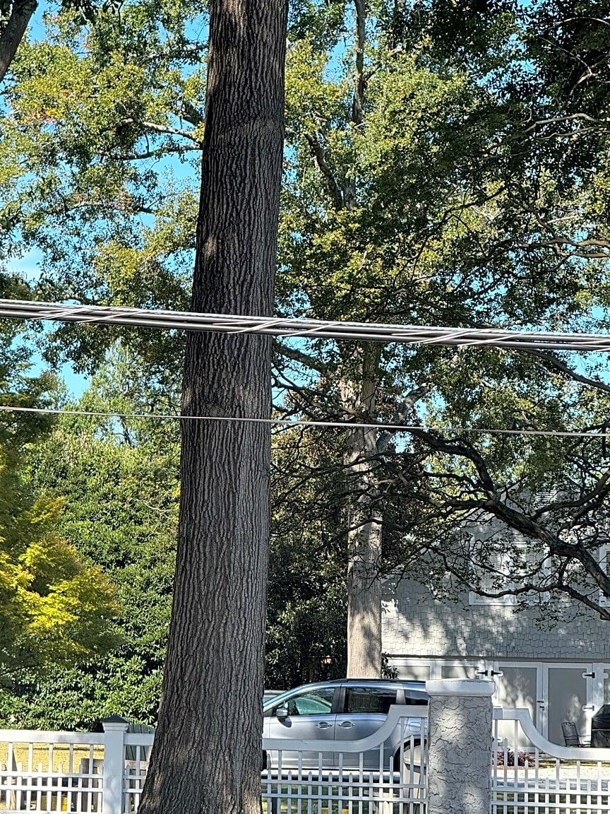 - Communications line hanging very low on pole. Potentially dangerous and has been very low since Helene repairs