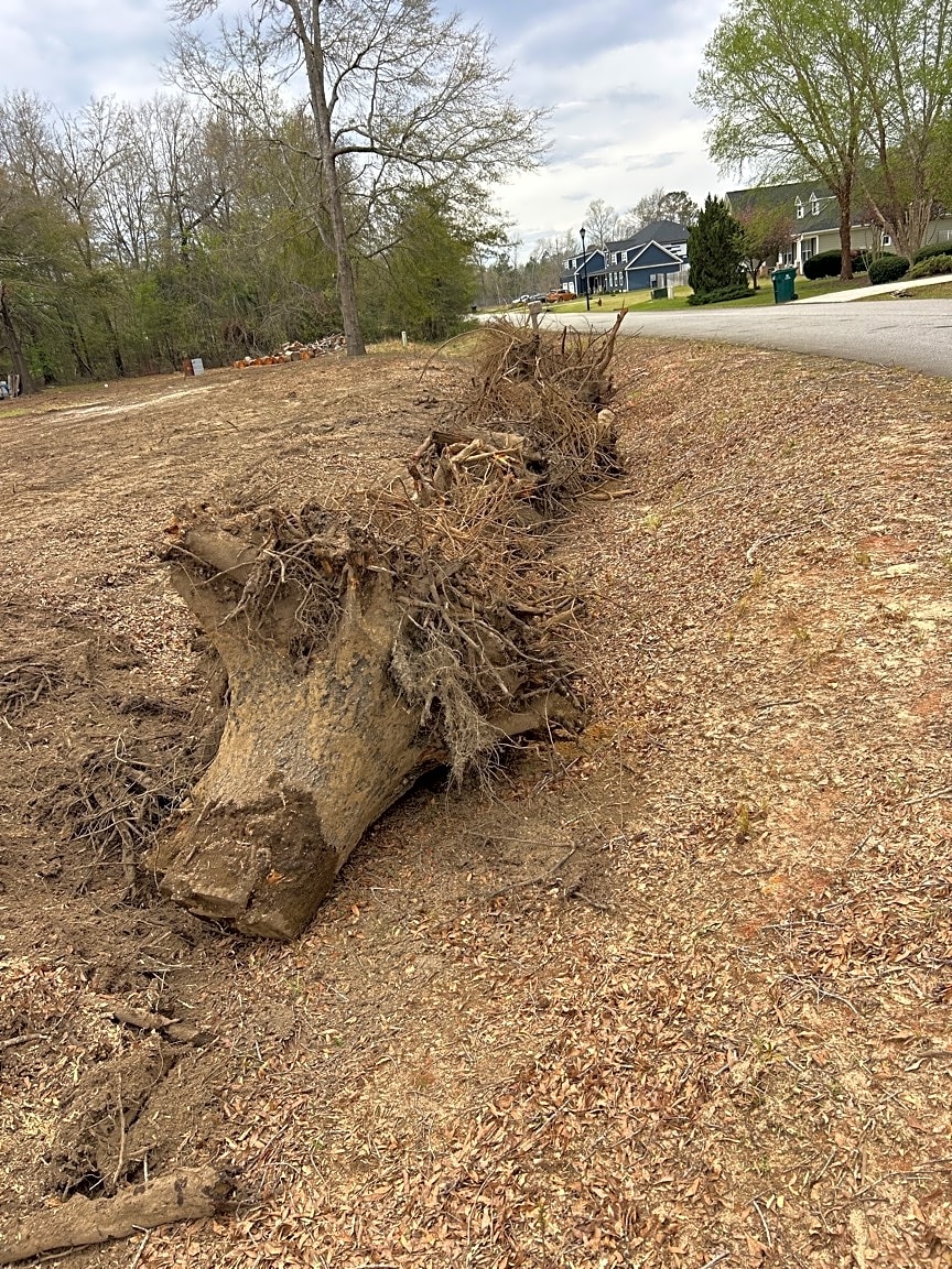 3007 Creek View Ct, AugustaA cut tree trunk is blocking sight of oncoming traffic.