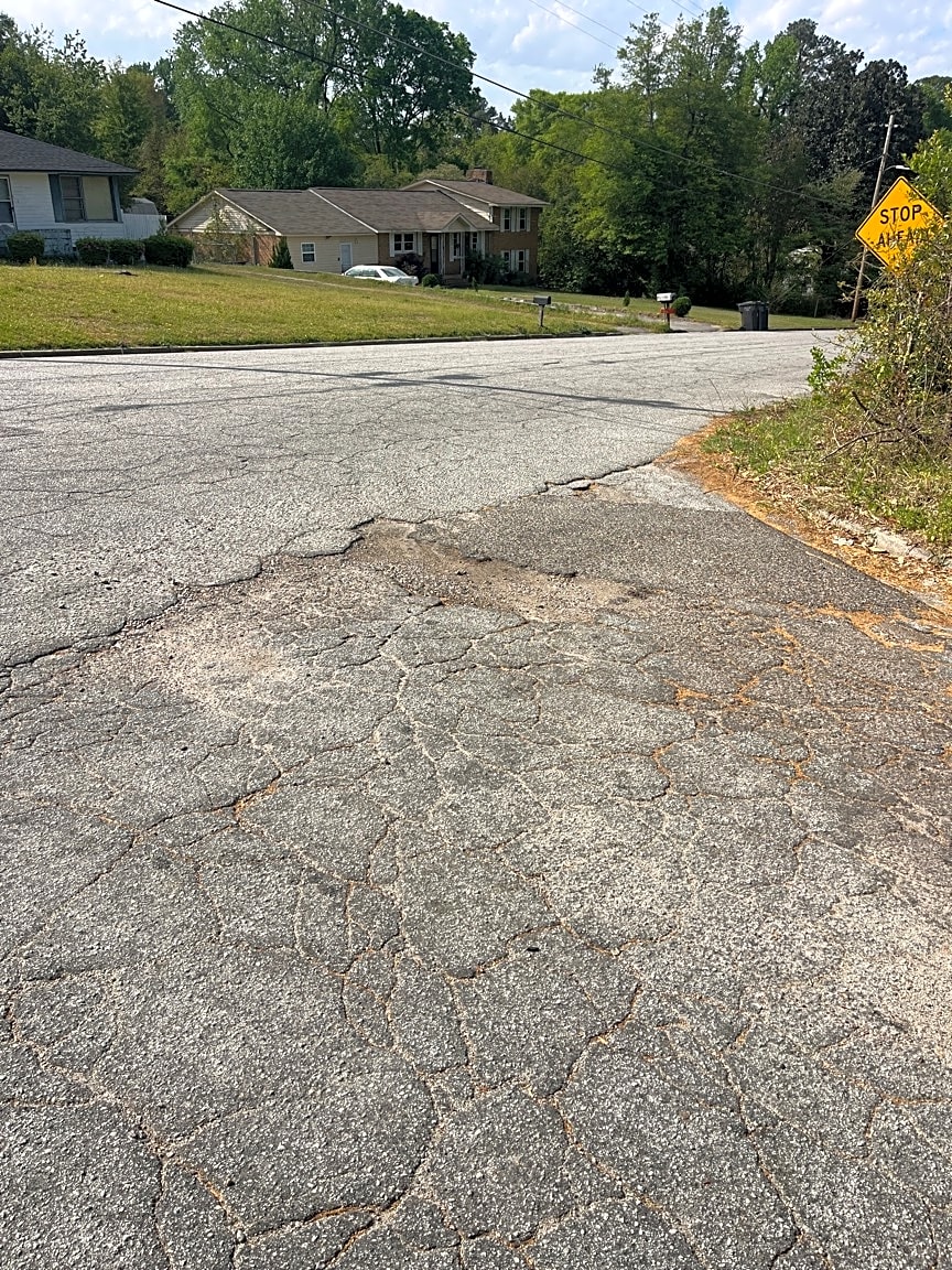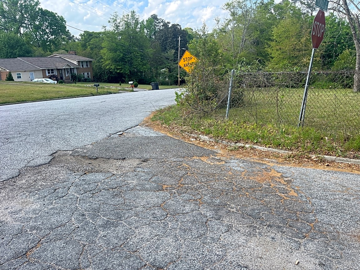 2831 Thomas Ln, AugustaPot hole at the end of Gordy Rd at stop sign at .. Thomas Lane 2800 block..